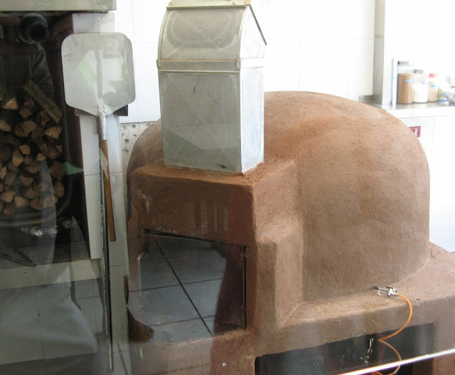 There's a good list of appetizers, but we passed over those and shared a pizza Margherita. In a small lapse of service, the pizza arrived at the same time as our steaks. The pizza itself was medium sized, and the toppings delicious. The crust, unfortunately, was pale and limp. One of the attractions of a wood fired oven is to obtain a well browned bottom crust on the pizza. But I will give the restaurant credit for making an effort to use it. Perhaps the pizza cooks need more practice to perfect what must be a difficult art to master.