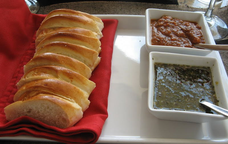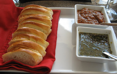 The waiter brought us warm bread, baked in house and the regulation red salsa and green chimichurrí. The bread, in fact, was passable but nothing special. The salsas were fine.