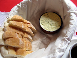 Our waitress brought us a basket of bread. Although the bread was unheated and ordinary, the accompanying herb butter was good.