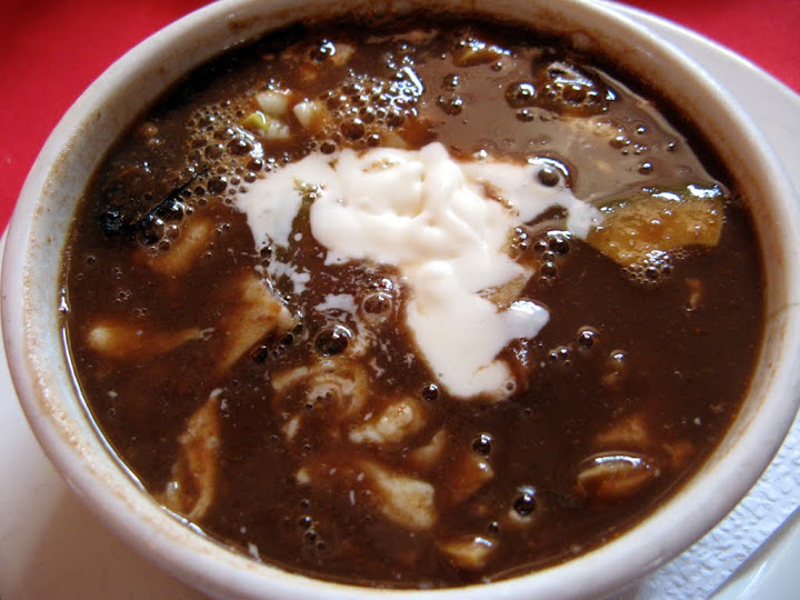 As the day was windy and rainy, I started my meal with a bowl of Sopa Tarasca. This bean or tomato based soup, invented by a local restaurateur, is a good indicator of a restaurant's overall quality. The Primer Piso version received good marks. Besides the classic garnishes of toasted chile pasilla, fried tortilla strips and crema, this came with slices of avocado. I would fault it only for its acidic edge.