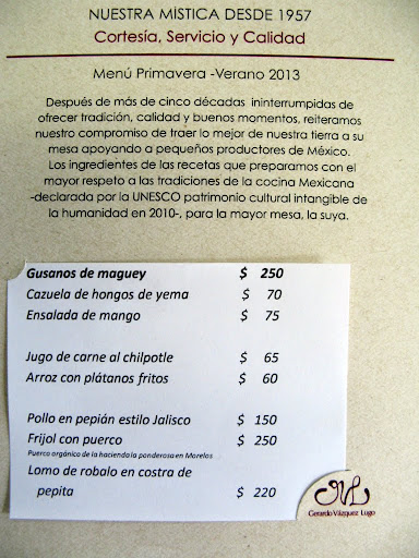 Tat phrase alone was enough to let me know that the place would be expensive -- and, most likely, a great dining experience. It goes on my list for my next Mexico City visit.