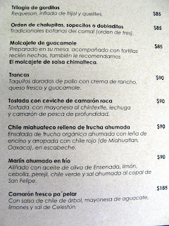 Nico's has been operating since 1957, and although it offers distinctive regional Mexican dishes, its look and feel are very different than that of El Bajío. El Bajío is festively decorated with artesanías but Nico's is more serious, with a sober decor of beige and brown walls. Nico's has gravitas. Nico's emphasizes that it obtains raw materials from small producers. It's also a founding member of the Slow Food Movement. At Nico's your attention is focused on the plate and the food, and less on the surroundings. We enjoy both El Bajío and Nico's, but what we ate at the latter gave near perfect pleasure.