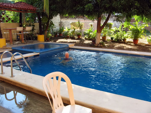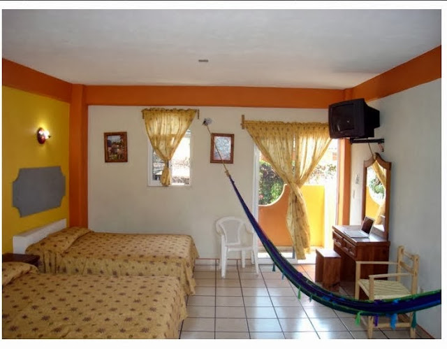As I mentioned earlier, I found this hotel when I went last year to nearby Calle Tamarindos in search of tomates criollos. I'd been curious for sometime what a hotel outside of the Calle Adelita—Colonia La Madera Gringo Gulch might be like. Sra. Paty, the manager, showed me some very pleasant rooms, and so this year I cast all doubt aside and booked a room over Skype for $500 pesos a night.